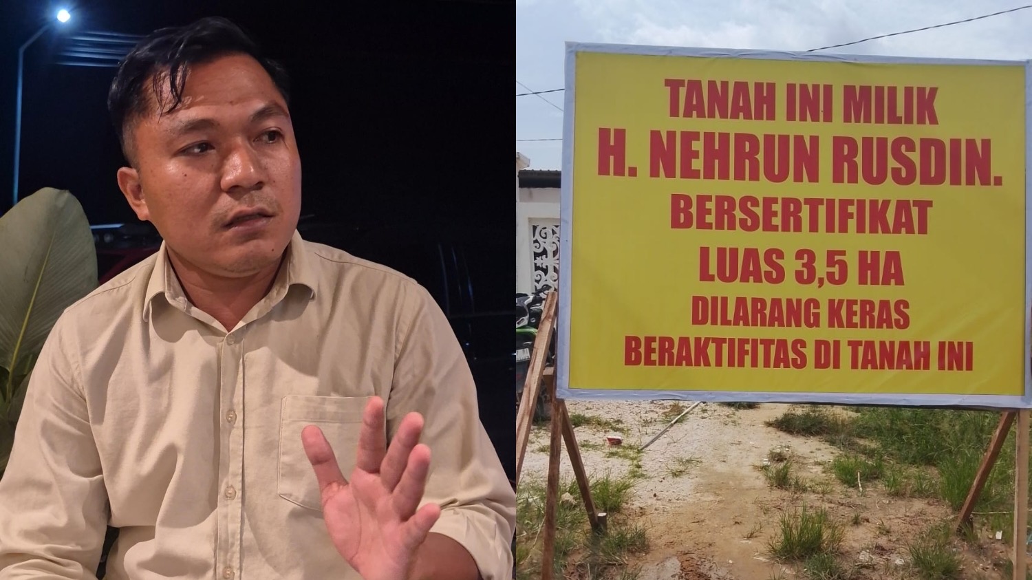 Namun, saat mengecek lokasi lahan, korban mendapati papan informasi yang menyebutkan tanah tersebut merupakan milik pihak lain dengan luas sertifikat 3,5 hektare serta larangan beraktivitas di atasnya. Kondisi itu memicu pertanyaan dari para pembeli yang hingga kini mengaku belum memperoleh kejelasan status lahan.
