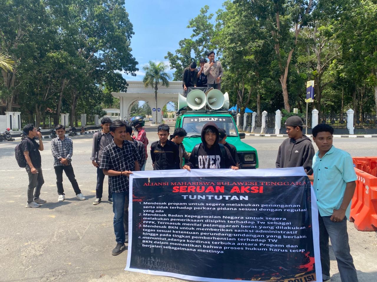 Gelombang tekanan publik terhadap aparat penegak hukum dan lembaga kepegawaian daerah menguat. Hal itu ditandai dengan aksi unjuk rasa yang digelar Aliansi Mahasiswa Sulawesi Tenggara (AMS Sultra) di Markas Polda Sultra dan kantor Badan Kepegawaian Daerah (BKD) Sultra, Selasa (28/4/2026).