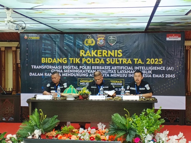 Deliksultra.com, Kendari – Kepolisian Daerah (Polda) Sulawesi Tenggara (Sultra) melalui Bidang Teknologi Informasi dan Komunikasi (TIK) menyelenggarakan Rapat Kerja Teknis (Rakernis) Tahun Anggaran 2025 pada Kamis (21/8/2025) pukul 08.00 WITA di Hotel Kubah 9, Kendari. Kegiatan ini mengusung tema *“Transformasi Digital Polri Berbasis Artificial Intelligence (AI) Guna Meningkatkan Kualitas Layanan Publik dalam Rangka Mendukung Asta Cita Menuju Indonesia Emas 2045”*.