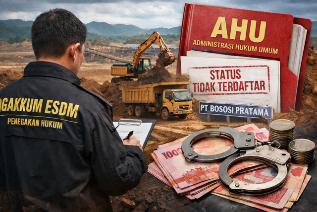Deliksultra.com, Jakarta – Aktivitas tambang PT Bososi Pratama di Kabupaten Konawe Utara (Konut), Sulawesi Tenggara (Sultra), kini berada di bawah sorotan serius pemerintah pusat. Di tengah konflik kepengurusan dan putusan hukum yang telah berkekuatan tetap, Direktorat Jenderal Penegakan Hukum (Gakkum) Energi dan Sumber Daya Mineral (ESDM) Kementerian ESDM RI mengungkap fakta krusial. PT Bososi Pratama tidak lagi tercatat dalam sistem Administrasi Hukum Umum (AHU), namun tetap melakukan produksi pertambangan kondisi yang dinilai berpotensi menimbulkan tindak pidana korupsi.