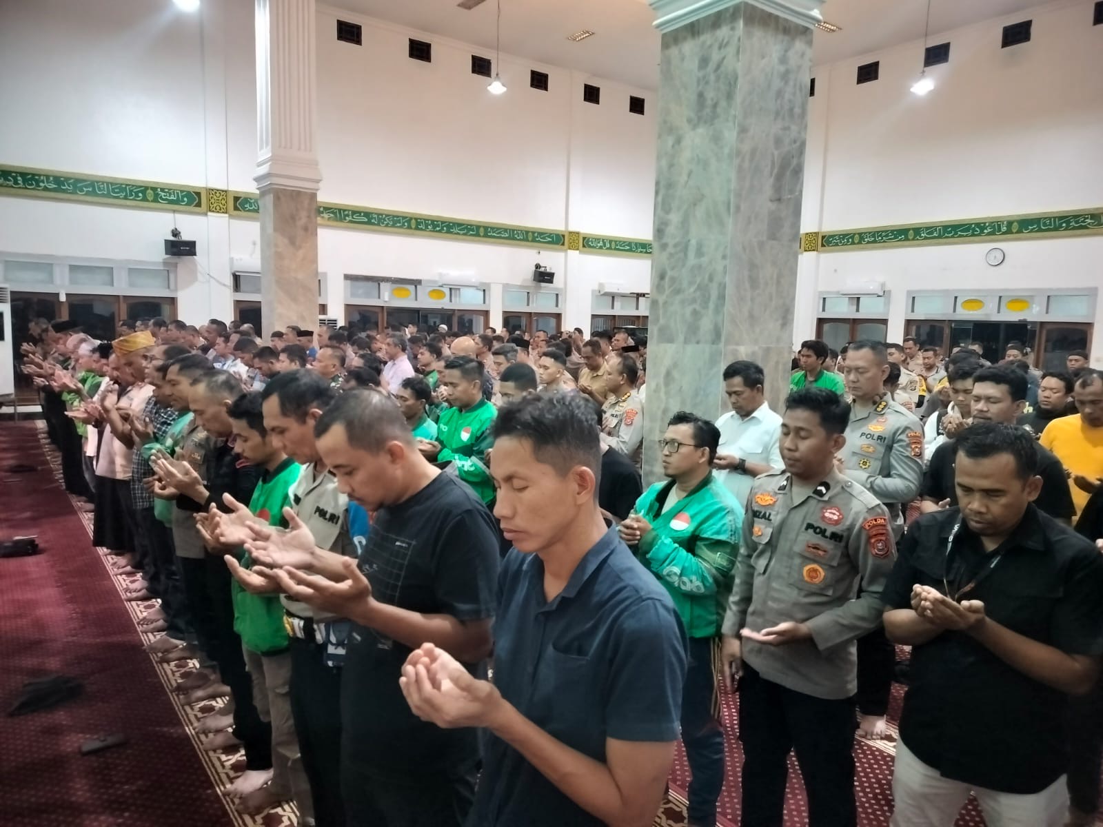 Kapolda Sultra Bersama Pengemudi Ojek Online Sholat Maghrib dan Sholat Gaib Bersama di Masjid Al-Amin