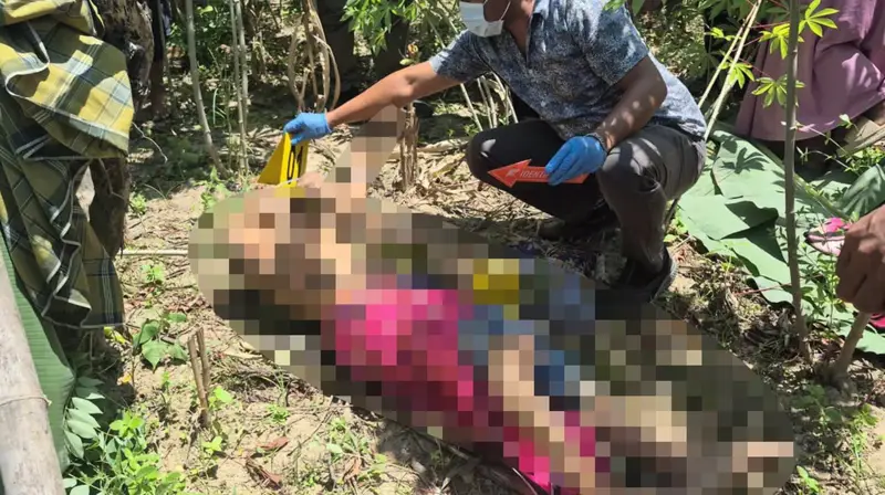Lokasi penemuan jasad berjarak sekitar 200–300 meter dari jalan raya. Untuk mencapai titik kejadian, warga maupun aparat harus berjalan kaki karena akses kendaraan tidak memungkinkan. Saat ditemukan, korban hanya mengenakan sarung dan terbaring di antara tanaman ubi kayu.