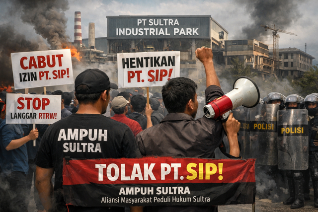 Deliksultra.com, Kendri – Aliansi Masyarakat Peduli Hukum (Ampuh) Sulawesi Tenggara (Sultra) mendesak pemerintah Kabupaten Bombana, Provinsi Sultra hingga Pemerintah Pusat untuk segera menghentikan kegiatan PT. Sultra Industrial Park (SIP) di Kab. Bombana serta mencabut semua perizinannya.