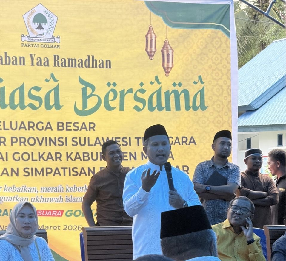 Deliksultra.com, Muna – Suasana kebersamaan terasa dalam kegiatan silaturahmi dan buka puasa bersama yang digelar Dewan Pimpinan Daerah Partai Golkar Sulawesi Tenggara bersama masyarakat Tongkuno, Kabupaten Muna, Jumat (13/3/2026).