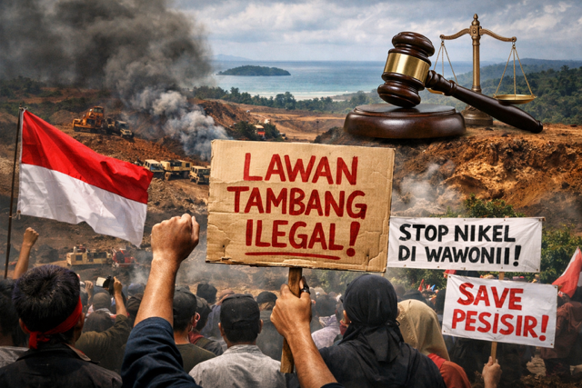 Deliksultra.com, Konkep – Isu tambang di Pulau Wawonii, Kabupaten Konawe Kepulauan, kembali mencuat bukan semata karena keberadaan perusahaan, tetapi lebih pada dugaan lemahnya penegakan regulasi oleh pemerintah. Aliansi Masyarakat Peduli Hukum (Ampuh) Sulawesi Tenggara (Sultra) menilai, aktivitas pertambangan di wilayah pulau kecil itu seharusnya sudah berhenti total pasca berbagai putusan dan kebijakan nasional.
