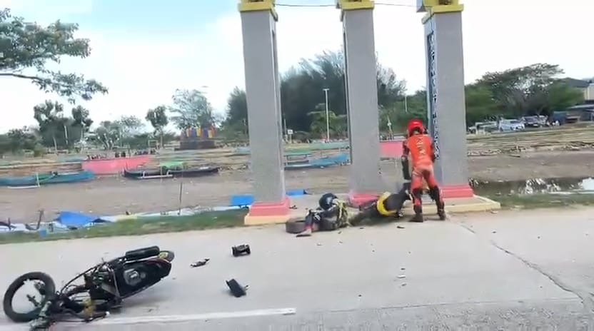 Benturan keras tersebut membuat motor Bocil terdorong ke sisi kanan lintasan hingga menabrak sebuah gerbang pembatas. Kedua pembalap langsung terjatuh dan mendapat pertolongan cepat dari panitia lomba. Bocil kemudian dilarikan ke RSUD Tandoala Bombana untuk mendapatkan perawatan medis.