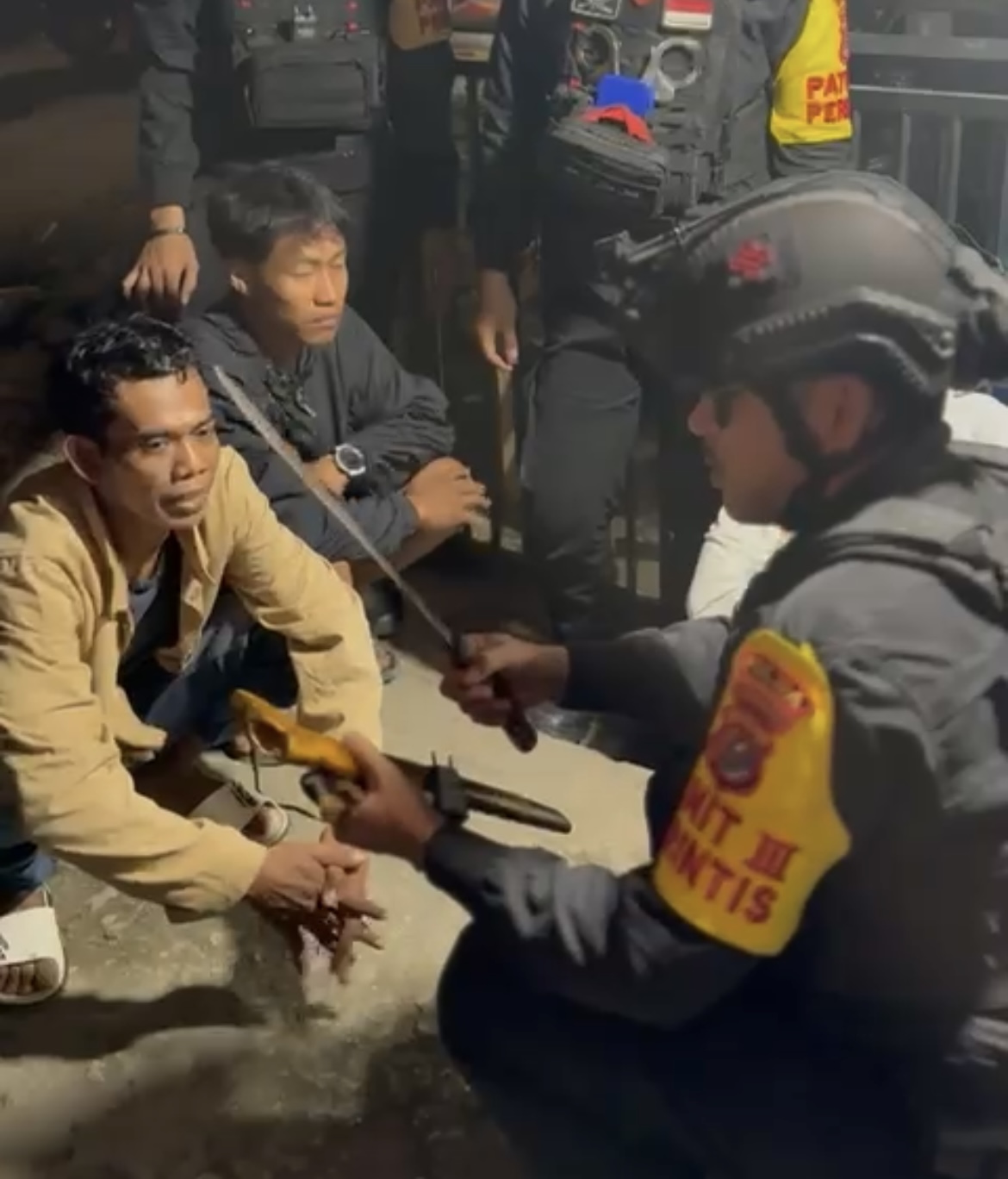 “Ketika kami lakukan pendekatan, mereka tampak gelisah. Setelah dilakukan penggeledahan, ditemukan dua senjata tajam yang disembunyikan,” ujar BRIPKA Boy Sagita.